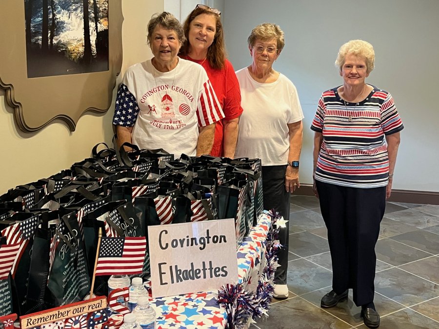 The Covington Elkadettes from the Covington Elks Lodge 1806, spent several hours on November 8th at the local Covington Veterans Administration Clinic. They greeted all veterans arriving at the clinic. When the veterans left, the Elkadettes provided them with patriotic swag bags containing plastic water bottles, bracelets, lanyards, a flag pin, a banana, a deck of cards, and a bottle of water. The Elkadettes really enjoyed their time with the veterans. This event is in keeping with the long tradition that the Covington Elks and Elkadettes have of honoring and serving our nation’s veterans