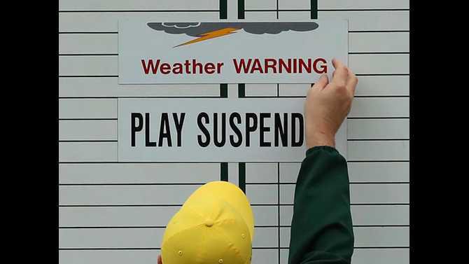Johnson was at the club earlier in the day to practice before the wave of storms forced Masters officials to close the course. Coincidentally, he predicted earlier in the week that tough conditions could make the leaderboard resemble a game of musical chairs.