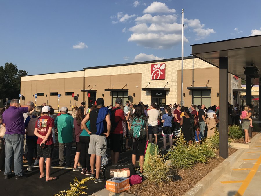 COVINGTON, Ga. - Upwards of 80 Chick-fil-A fans couldn't wait to line up in the parking lot of Salem Bridge's Chick-fil-A First 100 Grand Opening event at 12290 Brown Bridge Road in Covington.