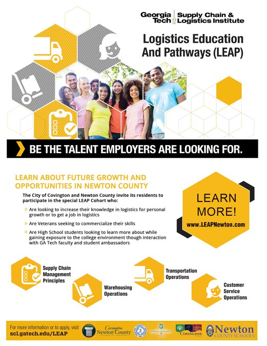 Ten scholarships for Georgia Tech’s Logistics Education and Pathways program will be awarded by the Covington City Council at an upcoming council meeting. The LEAP program is an online certification program for those interested in increasing their knowledge in logistics. This augmented knowledge can help graduates secure a job in the logistics field or help those who currently hold a logistics-related job advance their career.