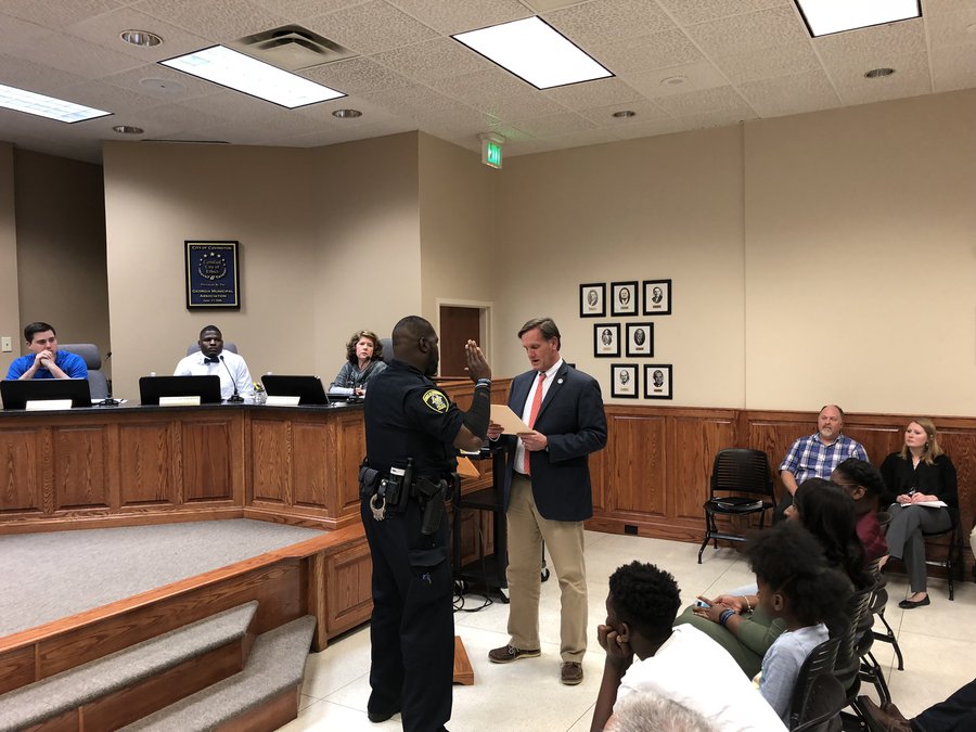 COVINGTON, Ga. – Covington Mayor Ronnie Johnston swore in the newest Covington Police Department officer March 5 during the Covington City Council’s regular monthly meeting. Marquis Johnson was previously sworn in privately Jan. 30, Johnston said.