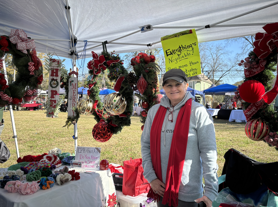 Other vendors sold holiday-specific items like Kathy Allen, owner of Kathy’s Krafts. She designs handmade, seasonal decorations. Some of her best-selling Christmas items include wreaths and porch signs.