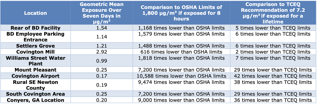 Thank you for your letter from earlier today. We believe there is a fundamental misunderstanding on how to interpret air monitoring results, so we wanted to share the perspectives of three toxicology experts that have reviewed both the City of Covington’s and BD’s air monitoring results.