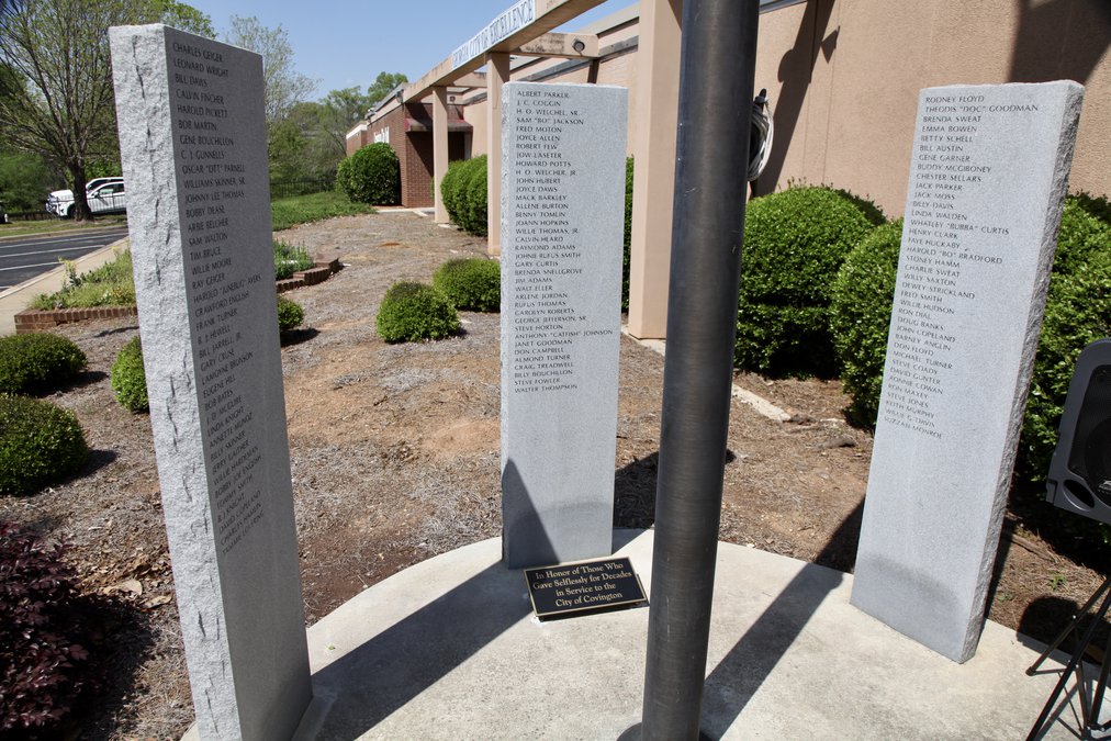 COVINGTON, Ga. — Dozens gathered beneath a cloudless sky in the front parking lot of Covington City Hall on Tuesday afternoon for a dedication to the city’s new Milestones.