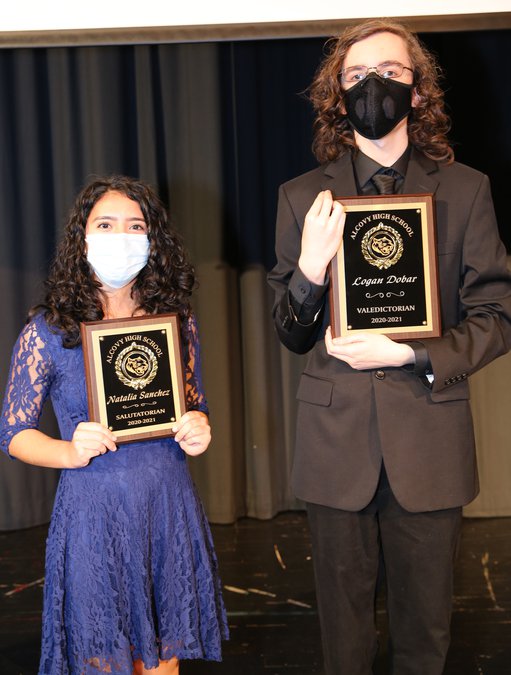 Graduating at the top of the class are valedictorian Logan Dobar, and salutatorian Natalia Sanchez.