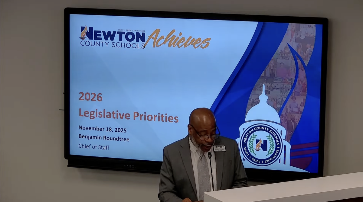 NEWTON COUNTY — At the Nov. 18 Board of Education meeting, Newton County Schools (NCS) Chief of Staff Benjamin Roundtree presented the district’s proposed 2026 legislative priorities, outlining key areas where the district plans to advocate for change at the state level. The overarching themes included increasing school funding, providing taxpayer relief, expanding opportunities for students, strengthening the educator pipeline and supporting mental health and safety.