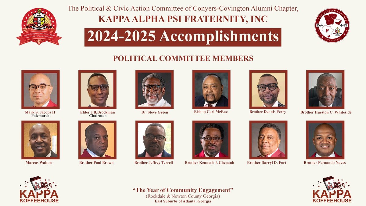 The Conyers-Covington (GA) Alumni Chapter (CCAC) of Kappa Alpha Psi Fraternity, Inc. has released its year end video highlighting the Political & Civic Action Committee’s accomplishments for 2024–25.