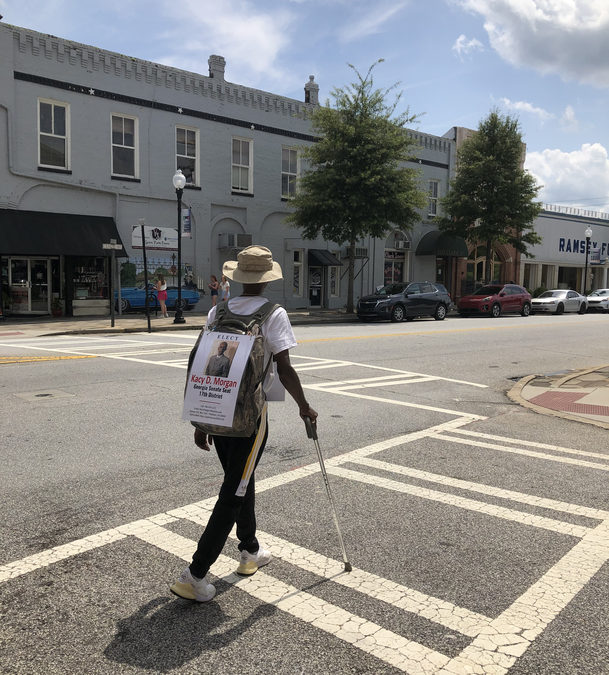 COVINGTON, Ga. — Kacy Morgan is not one to sit around and wait for voters to come to him.
