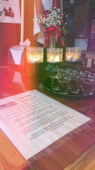 The Depot Sports Bar and Grill in Covington also paid tribute by placing 13 shots of liquor on a table with flowers, candles and a list of the fallen soldiers' names.