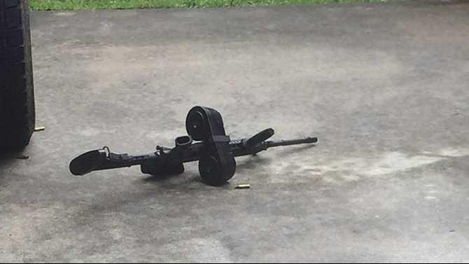 He then went to his residence on Ebenezer Road where there was a male and female at home.According to reports when the first deputy arrived the female ran out of the house and took cover. The suspect, who was in the garage with his assault rifle, started firing at the deputy, who returned fire. During the shootout occurred and the suspect was shot and injured.
