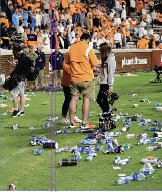 The debris came mostly from the Tennessee student section and included water and soda bottles, beer cans, pizza boxes, vape pens, liquor bottles, hot dogs and a mustard bottle, according to The Knoxville News-Sentinel.