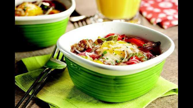 1. Look for dining occasions for vegetables throughout the day, including breakfast. While veggies are often only thought of at dinnertime, parents can help ensure their kids get the proper amount of vegetables by combining Birds Eye frozen fruit and veggies into other meals and snacks, such as smoothies. These are a great start to the morning and an easy way to work in extra servings of fruits and vegetables. Another option is combining many ingredients, including veggies, into a single breakfast dish, such as the Baked Eggs with Peppers and Breakfast Sausage recipe below.