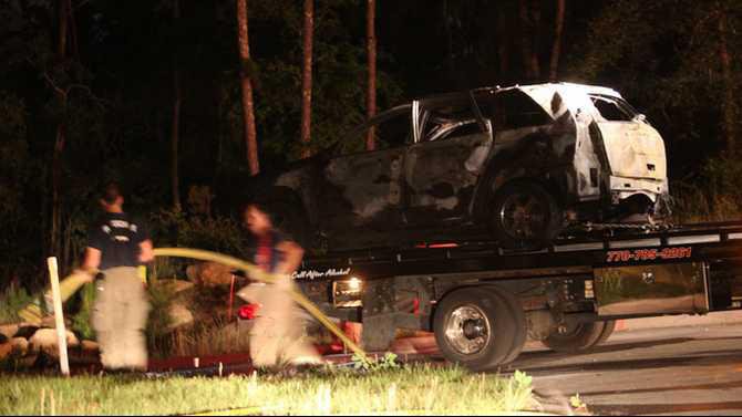 Firefighters responded to calls of a vehicle on fire on Lake Capri Road near the intersection with Rockbridge Road around 10:30 p.m. Wednesday. Neighbors reported hearing several loud explosions as the car and its gas tank burned. One neighbor said the explosion shook her home door so violently she thought someone was trying to break in.