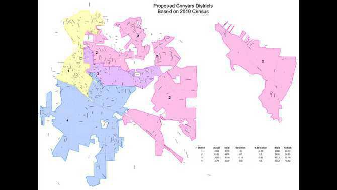 IN BRIEF: Conyers city council approved a redrawn map of the four Conyers city districts after holding a second public hearing at the city council meeting tonight. The proposed map will now be submitted to the US Department of Justice for approval. Chief Administrative Officer David Spann previously said he hoped it would be approved by the DOJ in time for the November elections.