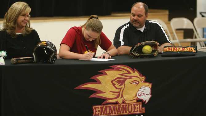 Riley Clingerman can do it with the best of them. That includes the boys. Clingerman, who signed a four-year scholarship to play softball at Emmanuel College on Friday morning, played baseball for three years at Peachtree Academy before the school established a softball team and now she is headed to college with all of the support of her school, friends and family.