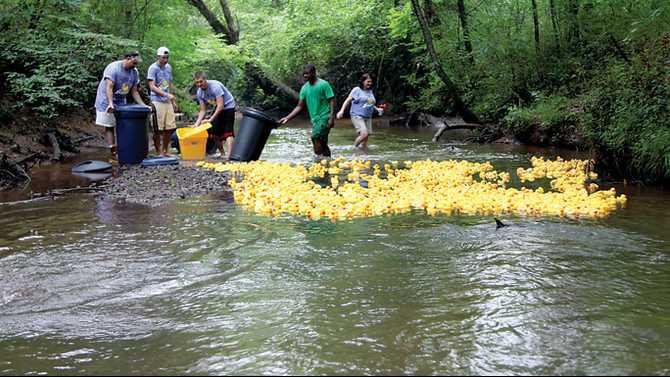 Ducks were the main wildlife sighting in the waters of Honey Creek on Thursday as about 1,200 were seen wading through the creek. They were the rubber kind, however, as part of Rockdale County Senior Services' largest annual fundraiser. Up for grabs, along with helping a good cause, were prizes such as a Smokey Mountain vacation package valued at $1,350, a seven-day stay at a Marriott Vacation Club resort, tickets to Dollywood, a digital camera, a 24-inch flat screen HDTV, gas cards, restaurant gift cards and more.