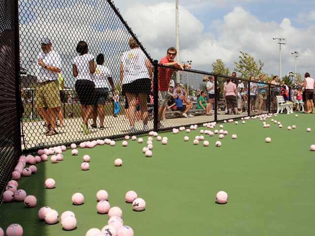The morning was slightly overcast but dry for the first day of the Kimberly Chance Atkins Memorial Tennis Tournament, as more than 100 teams participated in the fundraising event to help fight breast cancer. Here are a few scenes from the tournament day and first ever tennis ball drop; for more photos, look for the Sept. 4 edition of the Rockdale News. Also, click here to check out scenes from the "breast party of the year."