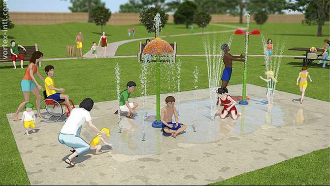 The splash pad, according to the Vortex Aquatic Structures, is an aquatic play pad where various water fountains and streams provide a play area for children to run through or under. The splash pad is a zero-depth water playground that combines different types of water movements that will be used to cool off and entertain its users. The splash pad is to be 20 by 30 feet and was designed and purchased from Hasley Recreation Inc., the southeast distributor for Vortex Aquatics International.
