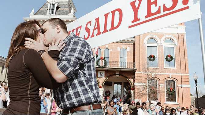 Sills was watching the parade on the square and thought that Terrell was riding on the NCSO float. Instead, he was on one with both his parents and hers. A sign reading, "All I want for Christmas is yes" hung above an arch, and signs on the side queried, "Kaila Sills will you marry me?"