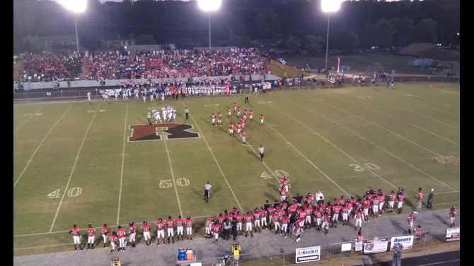 HALFTIME REPORT: Heritage stifiling Rockdale at halftime with the defense leading the way in 28-0 advantage at intermission. The Patriots scored two TDs off of turnovers and another touchdown following an onsides kick. Heritage has held Rockdale to just 35 yards of offense on two first downs. The Bulldogs have not been able to advance past their own 41-yard line.