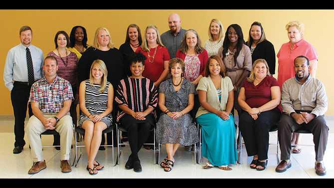 Seated left to right: Steven Havick-SHS, Meghan Bozaich-CJH, Berit Pitchford-OC, Barbara Mitchell-DMS, Tiffany McLymore-RMSST, Pam Akin-HCE, Kenneth Tucker-RCHS. Standing: Steve Johnson-Alpha, April Roberts-EMS, Cherelle Jones-PSE, Samantha Swaney-HHS, Laura Bashaw-SCE, Christy Dye-BES, Chris Mays-RCA, Kim Manget-HTE, Carol Hardy-LES, Pauline Joseph-PCE, Natalia Dinsmoor-FSE, Tommie Morgan-JHH. Not pictured/separate pictures: Nicka Grimes-CMS, Kim Mathis-MMS, Hillary Simpson-SES