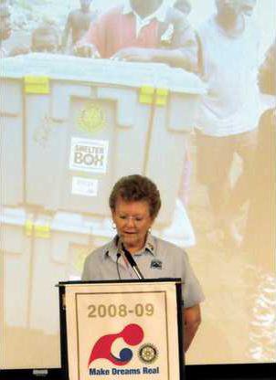 Ms. Phyl Strawberry gave an inspiring presentation of Shelter Box at a recent Rockdale County Rotary Club meeting and how it provides help for disaster victims worldwide. The ShelterBox Trust is a registered UK charity, started by a UK Rotary Club, that provides emergency aid for victims of natural and other disasters anywhere in the world.