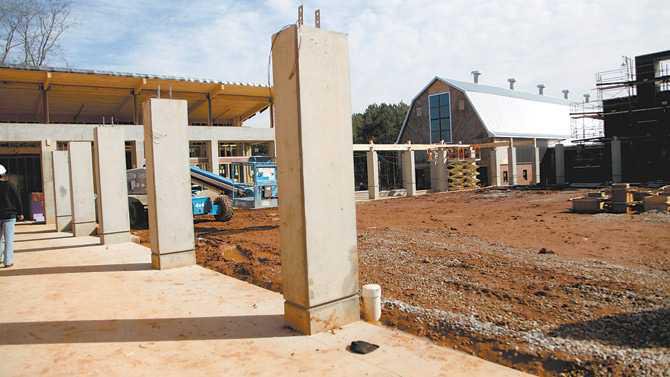 Out of the ground: Construction of the new visitor's center at the Monastery of the Holy Spirit is coming along quickly and is expected to open by spring. (Above). The visitor's center, exhibit hall and cloister-like walkway are taking shape. (Below( A look inside the renovated and reinforced historic barn.