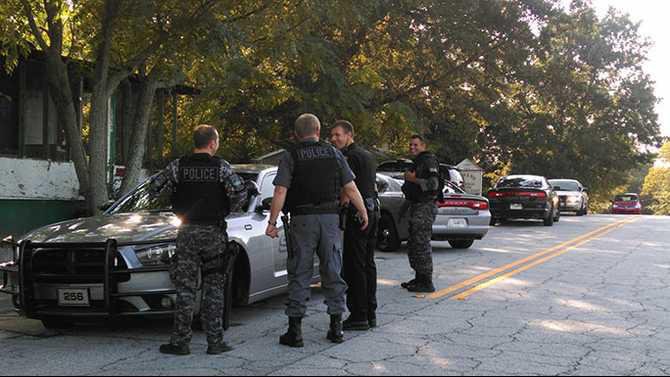 Conyers Police Department officers and Rockdale Sheriff's Office deputies set up a search perimeter using K-9 units.
