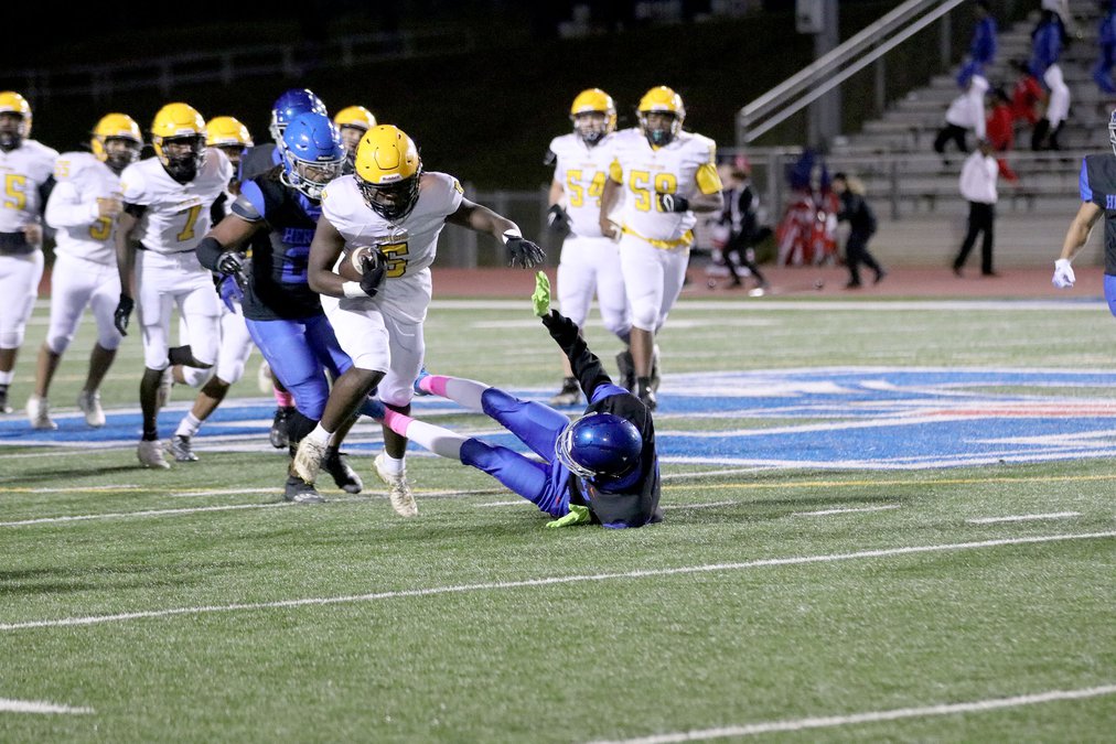 Numerous times, Heritage runners would be stuffed for a negative play to constantly place the Patriots’ offense in a lot of third and long situations.