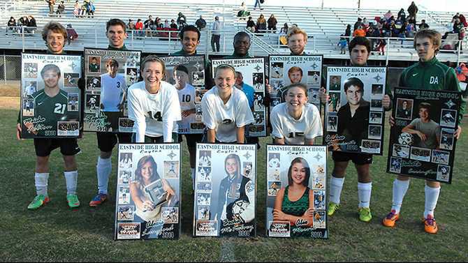 Eastside seniors Alex Morvik and Becka McKelvey scored a goal apiece, and senior goalie Alexis Langford posted a clean sheet, as the Eastside girls varsity soccer team won its final home game of the season 4-0 over the visiting Henry County Lady Warhawks on a cold, blustery Senior Night Tuesday at Homer Sharp Stadium.
