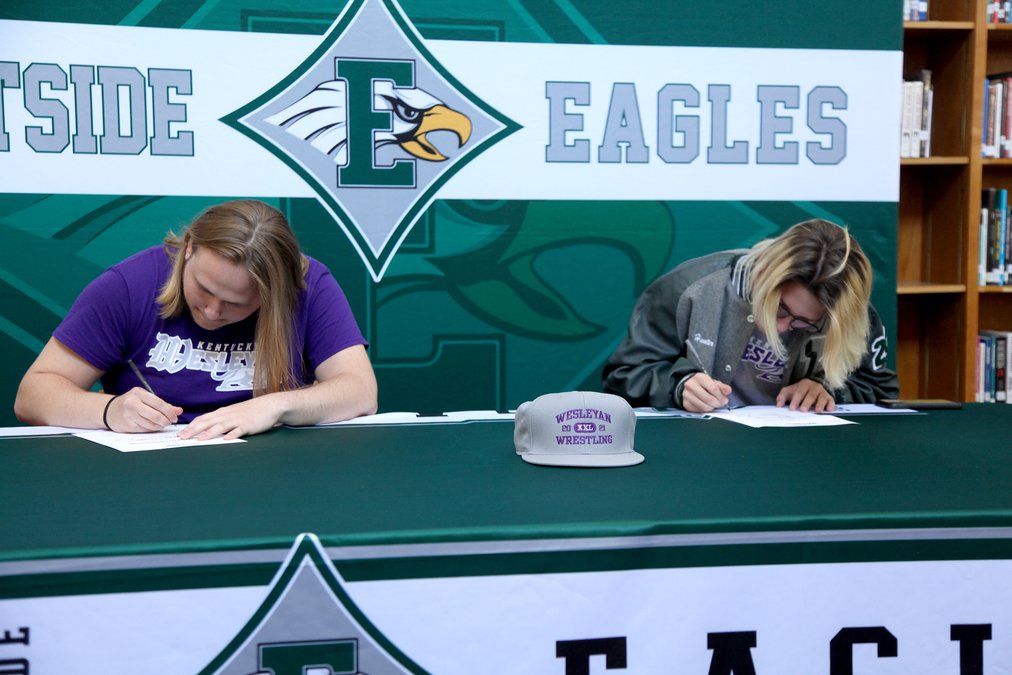 The wrestlers signed their National Letters of Intent on Thursday to wrestle at Kentucky Wesleyan College. Located in Owensboro, Ky., the Panthers compete in the Great Midwest Athletic Conference.