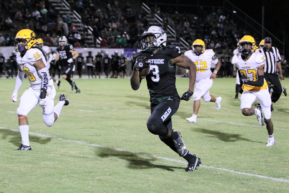 COVINGTON, Ga — A defensive battle turned offensive shootout ended with the Eastside Eagles triumphing over the Alcovy Tigers 30-21 on Friday night at Sharp Stadium.
